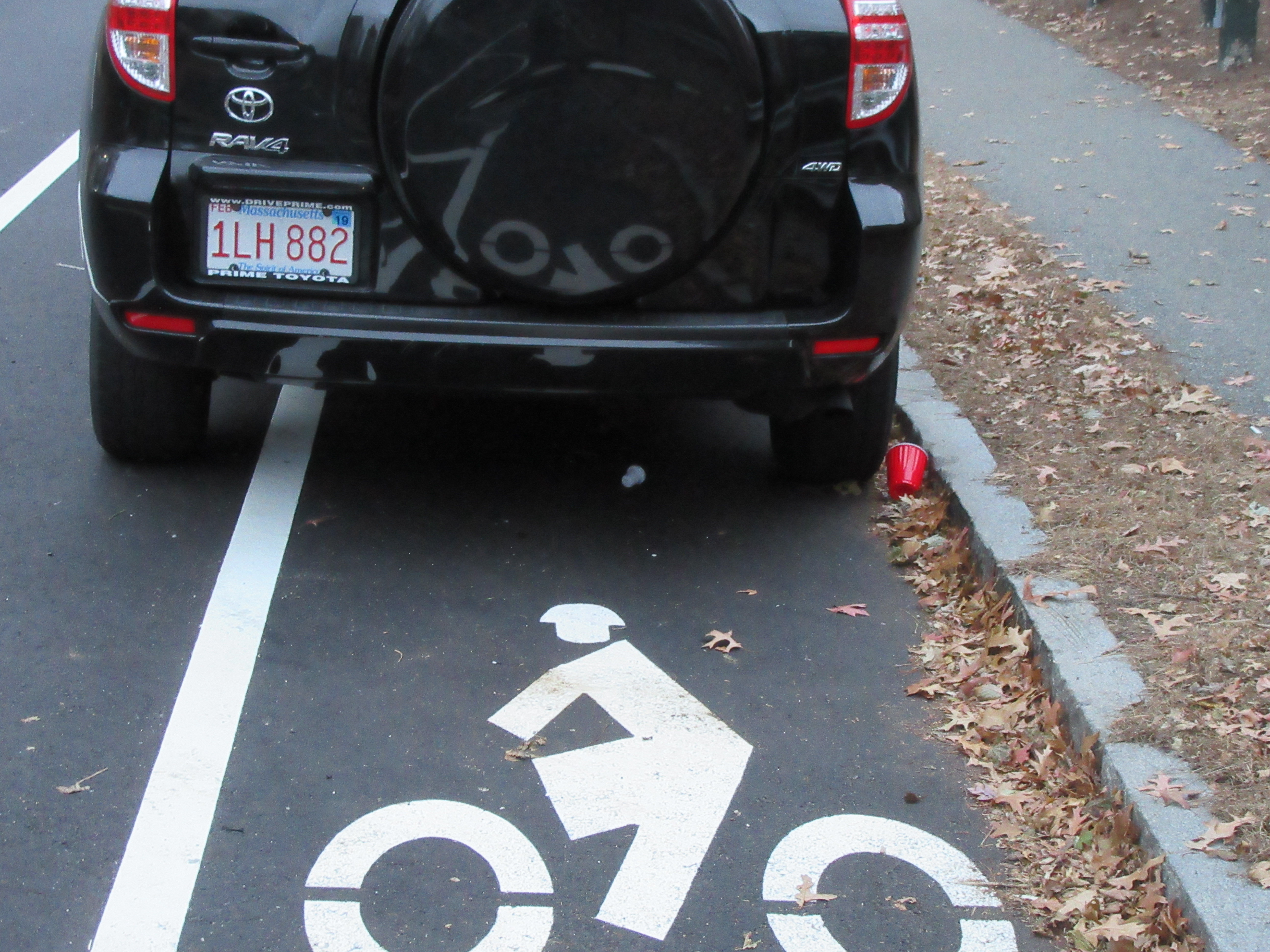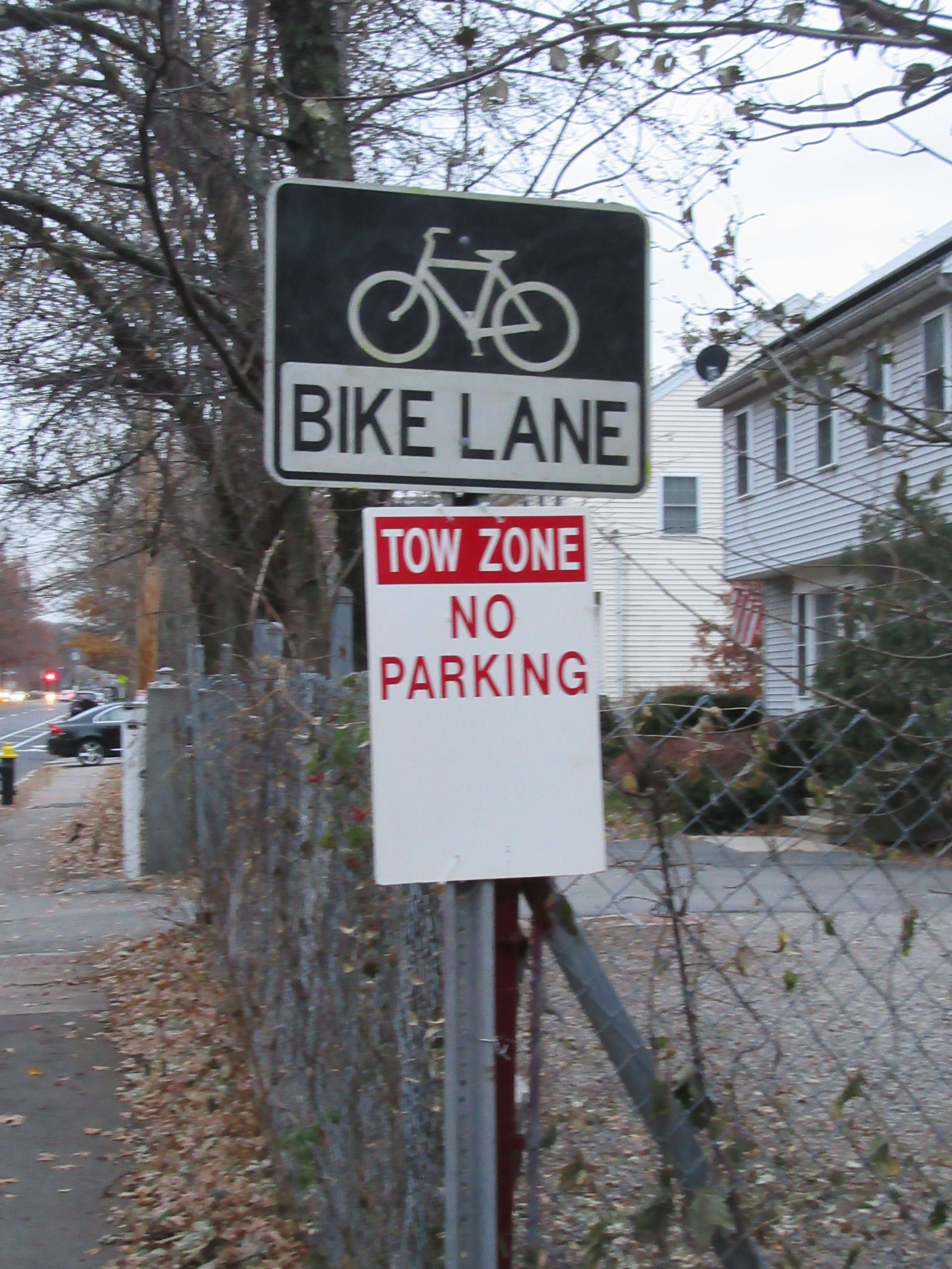 With the recent repaving of Brush Hill Rd. and Truman Parkway, new bike lanes were added between the off-street trail's ends a hndred yards north of Fairmount Ave. and the south side of Dana Ave. The problem is that there is only one "No Parking" sign, and even it has been ignored. On a recent Saturday afternoon, there were 10 cars parked in the new bike lane, making it unusable. Photos of all of the cars, with readable license plates are here. Photos by Jessica Mink
