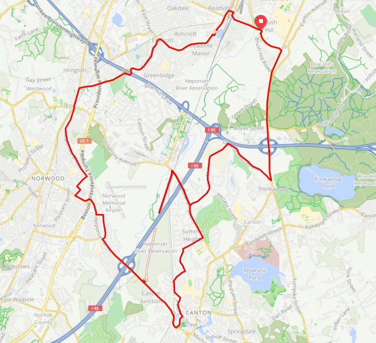 Ride south from Forest Hills on Hyde Park Ave. to Readville, then turn left on the Neponset Valley Parkway to Brush Hill Rd. just after crossing the Neponset River. From the eastern part of Boston, get to Mattapan Square and follow Brush Hill Rd south by forking left from Truman Parkway in Milton.