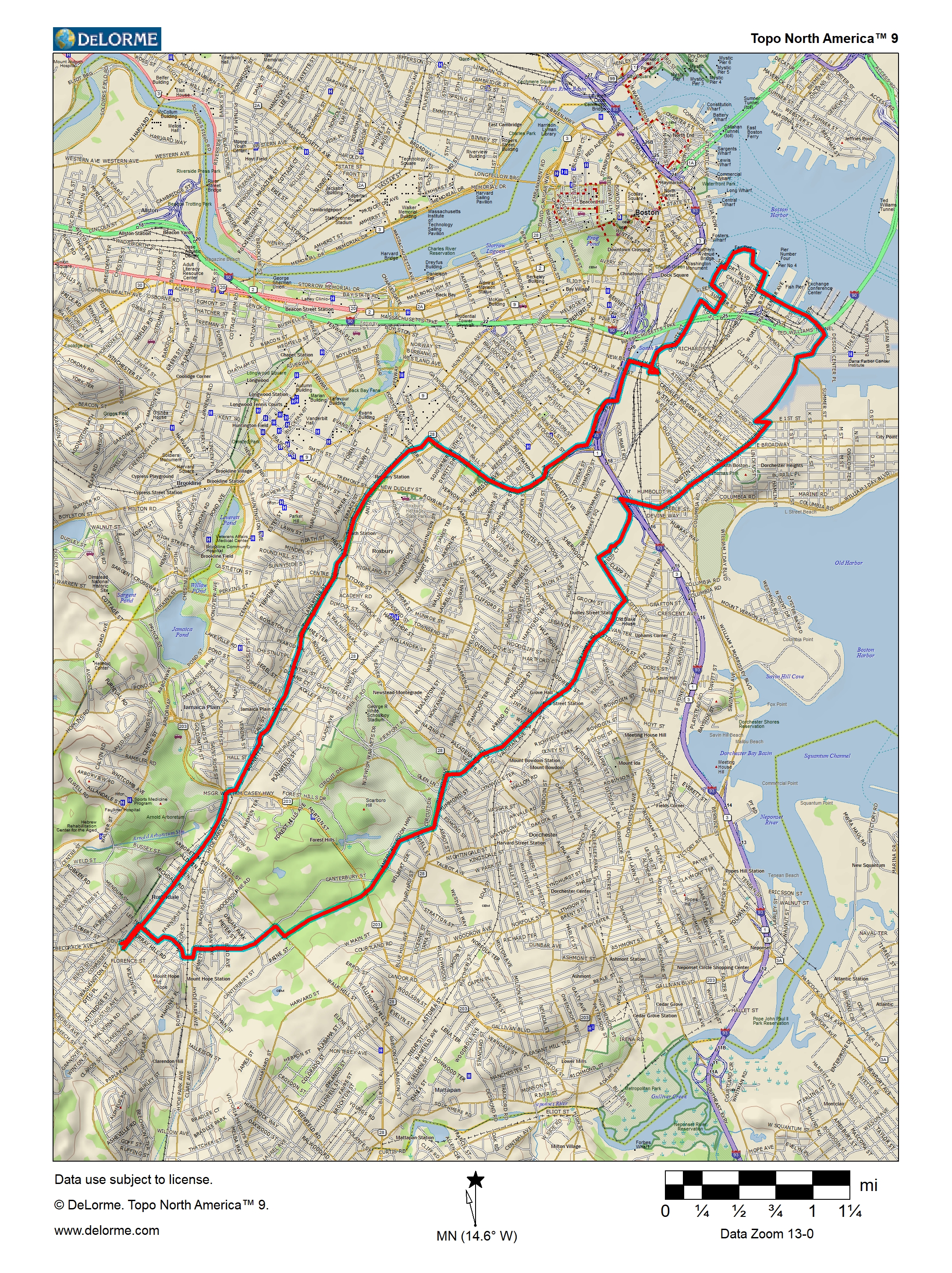 St. and follow it across South Brookline and West Roxbury to